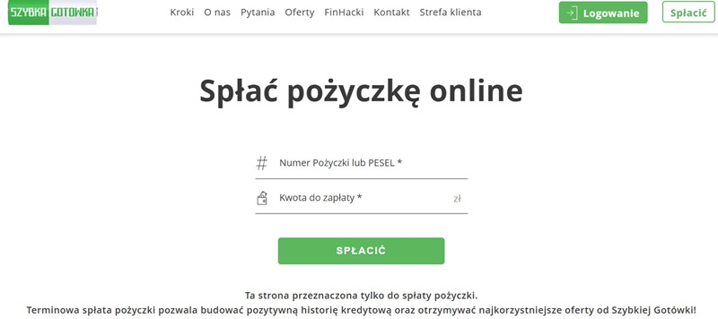 Problemy z logowaniemJeśli nie pamiętasz potrzebnego do zalogowania hasła, użyj przycisku „Przypomnij hasło” i postępuj zgodnie z komunikatami. W celu przypomnienia hasła do Profilu Klienta, serwisu Szybka Gotówka, podaj adres e-mail. Na numer telefonu powiązany z Twoim profilem zostanie wysłany kod, który pozwoli Ci ustawić nowe hasło. W przypadku kłopotów z odzyskaniem hasła, skontaktuj się z Biurem Obsługi Klient. Szybka Gotówka - Dane firmyNIP: 5252554232, REGON: 146670865. Kapitał zakładowy Spółki wynosi 250 000,00 zł. Telefon: +48 22 873 80 73Oficjalna strona: szybkagotowka.plLegalny adres: ul. Żurawia 32/34, 00-515 WarszawaZaloguj się do serwisu szybkagotowka.pl Pożyczki podobne do «Szybka Gotówka»RRSO