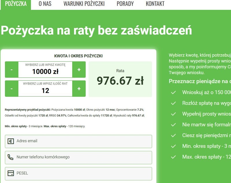 RRSO 15,5% od 100 do 30 000 zł od 18 lat od 7 do 30 dni Ostatnia aktualizacja: 29 grudzień 2025 Szukaj mikropożyczek według kwoty i terminuAsKredyt - opinie klientówKoszty wysokie. Sporo wykonanych telefonów. Otrzymanie pożyczki od zatwierdzenia 3 dni na konto to dość dlugo. Ale w porządku proces, prosty.