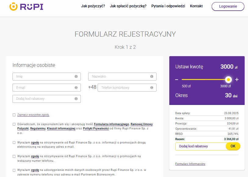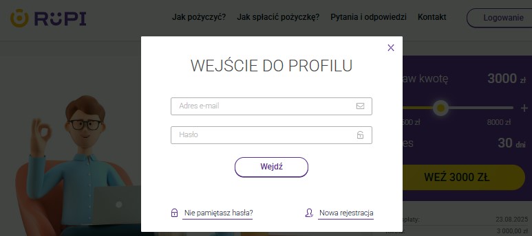 Rejestracja w Rupi – szybki wniosek o pożyczkę online
