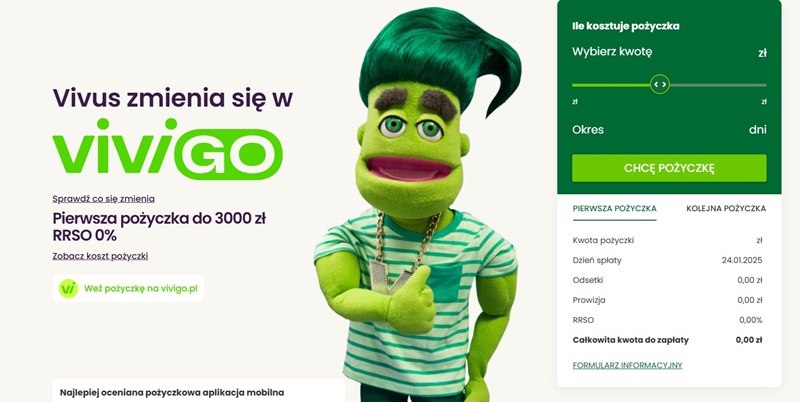 Vivus zmienia się w VIVIGOCo wymagane do logowania?Strona logowania Vivigo (Vivus) to dla pożyczkobiorcy Vivigo jedno z ważniejszych miejsc na portalu firmy - po zalogowaniu do Vivigo można sprawdzić informacje o pożyczce, choćby numer konta to spłat czy datę spłaty. Do logowania wymagane jest posiadanie konta klienta Vivigo - jeśli jesteś nowym klientem firmy, to przed zalogowaniem zarejestruj się w Vivigo albo zaloguj się jeśli posiadasz konto. Vivigo – logowanie i rejestracja konta osobistego w celu uzyskania pożyczki onlineJak złożyć wniosek o pożyczkę w Vivigo?Składanie wniosku o pożyczkę w Vivigo.pl jest szybkie i proste. Wystarczy wykonać kilka kroków: Wybór kwoty i okresu pożyczki