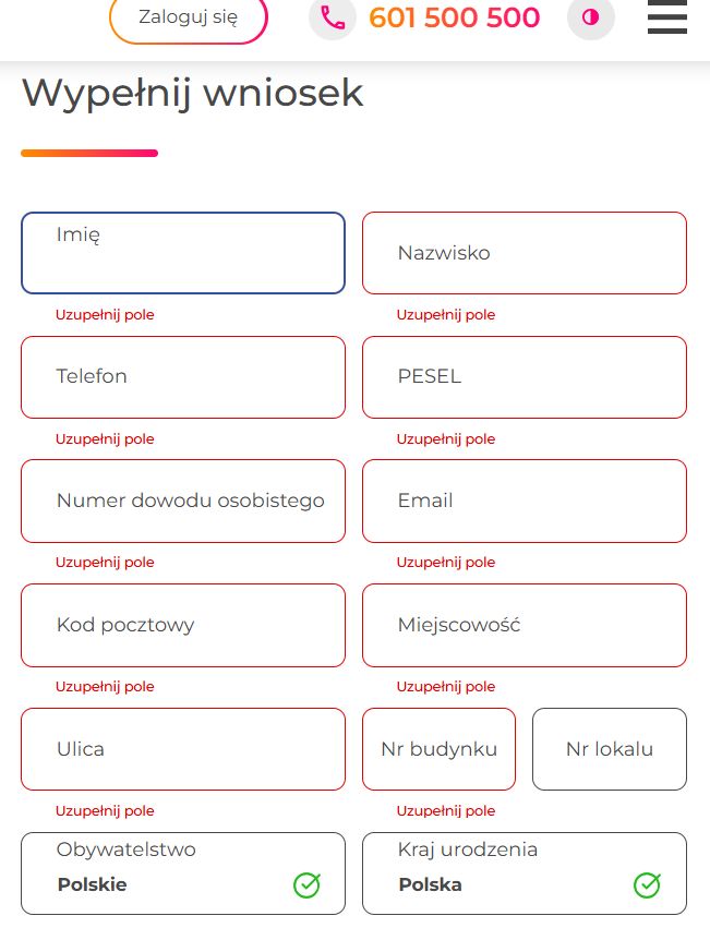 Rejestracja konta klientaRejestracja w KredytOK odbywa się automatycznie podczas składania wniosku o pożyczkę. Proces ten jest prosty i intuicyjny: