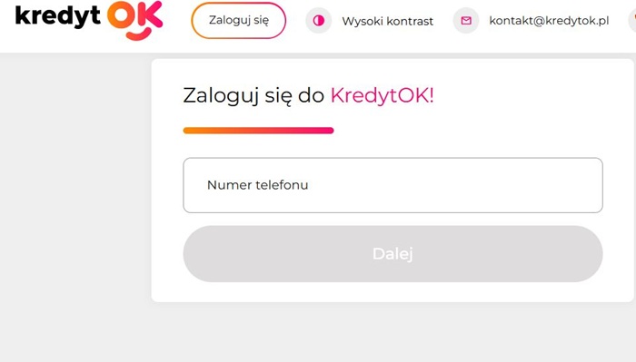 Logowanie do konta klientaAby zalogować się do swojego konta w KredytOK: